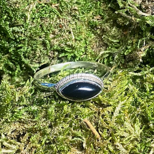 L’onyx est une pierre du chakra de base, soit du 1er chakra. Par son ancrage, cette pierre favoriserait un sentiment de paix et de sécurité. Elle aiderait au contrôle de soi, à avoir confiance en l'avenir. De plus, elle éloignerait la tristesse et apporterait ainsi résistance, force et vigueur, surtout pendant un deuil. Par ailleurs, l'onyx donnerait le sens des responsabilités et inciterait à la recherche de notre vérité. Aiderait également au nettoyage du karma (purifierait les énergies karmiques). Utile sur le travail des vies antérieures tout en permettant aussi d'aider d’anciens traumatismes. Lors de méditation, celle-ci favoriserait les réponses à nos questions.