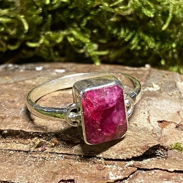 Le rubis est associé au chakra de base, 1er chakra. Très énergique, il stimulerait et renforcerait l'énergie du cœur. Activerait fortement le chakra de base, renforçant le désir de vivre et d'exister. Il rendrait donc plus gai, mais avec les pieds sur terre. Ce qui permettrait d'entendre les messages de notre Être profond, sur la vie. Comme être sur la voie et être dans l'action. Augmentant la confiance et l'estime de soi. Puis, repousserait la fatigue lors d'efforts physiques intenses. Ensuite, cette pierre brute en rubis serait très actif lors des maladies du cœur et de la circulation du sang, augmentant la pression sanguine. Par ses effets, il contribuerait à un rétablissement plus rapide. Mais attention, il faudrait la porter un court instant si l'on souffre d'hypertension ou de tachycardie.