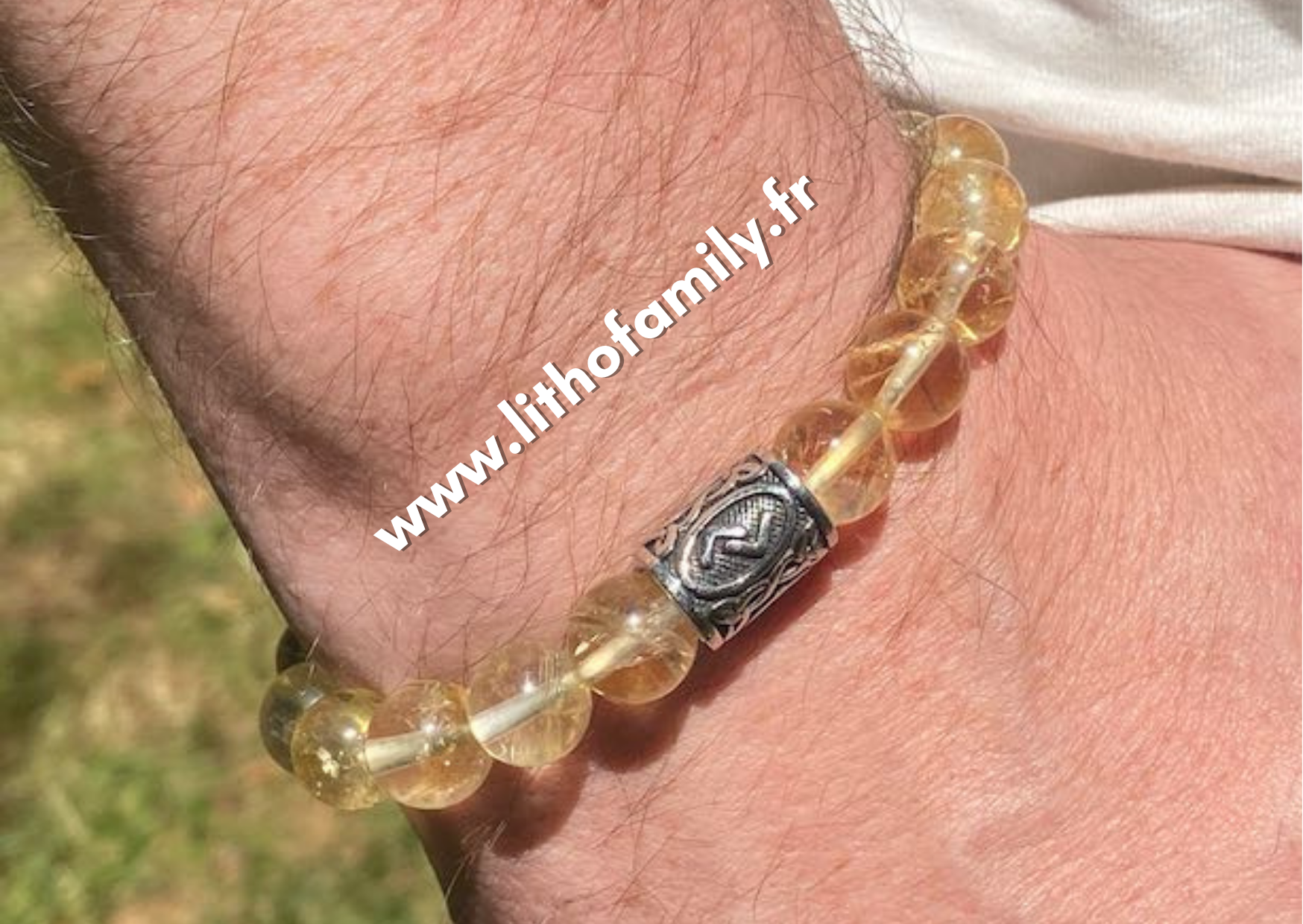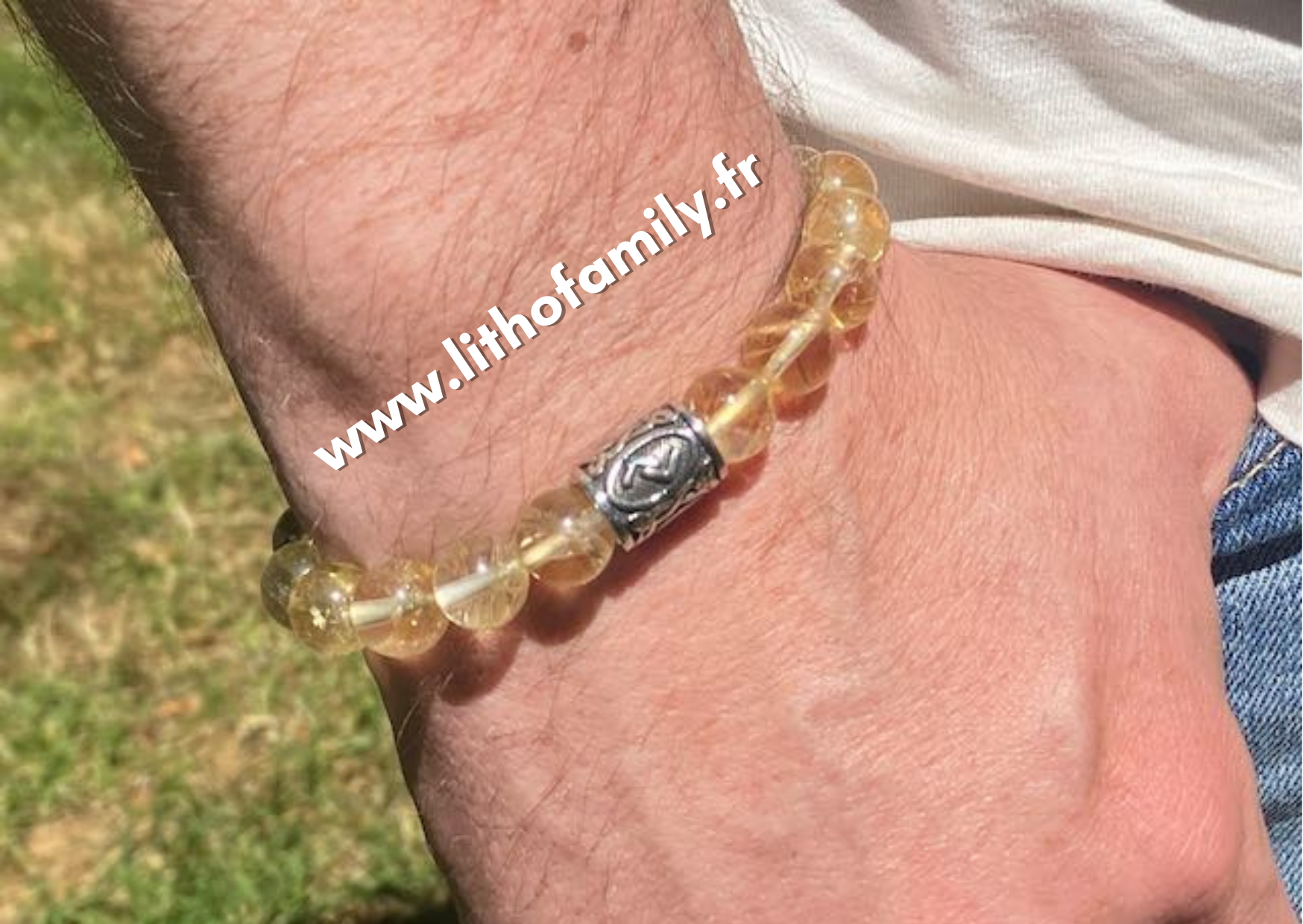 Bracelet citrine avec rune (modèle de rune selon les stocks)