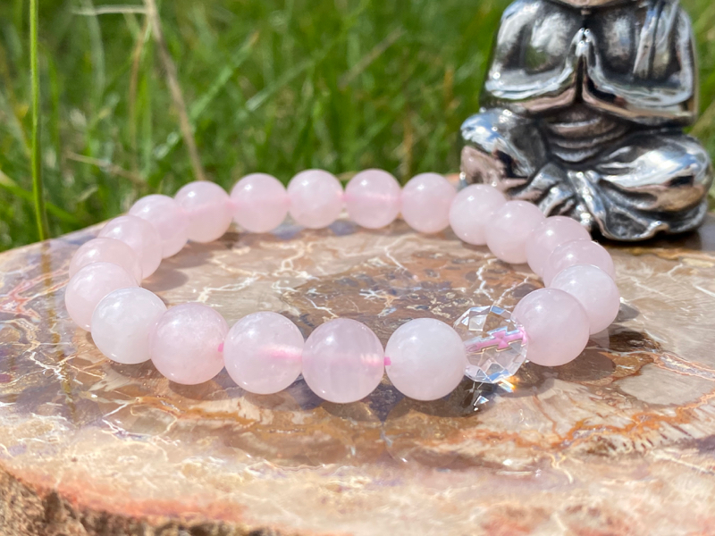 La quartz rose est une pierre du chakra du coeur, soit du 4ème chakra. En effet, cette pierre est surnommée pierre de l'amour. Celle-ci est douce, rayonne d'amour et de tendresse. Elle permettrait d'avoir plus d'estime de soi de s'accepter. Un gros bloc de quartz rose apaiserait une pièce. D'ailleurs, elle serait parfaite pour une chambre d'enfant. Elle lutterait contre le stress, les insomnies, les peurs et la souffrance émotionnelle. Sous l'oreiller, elle aiderait contre les problèmes de sommeil. Elle aiderait les peines de cœur. Par exemple sur la maltraitance, le manque d'amour, etc.