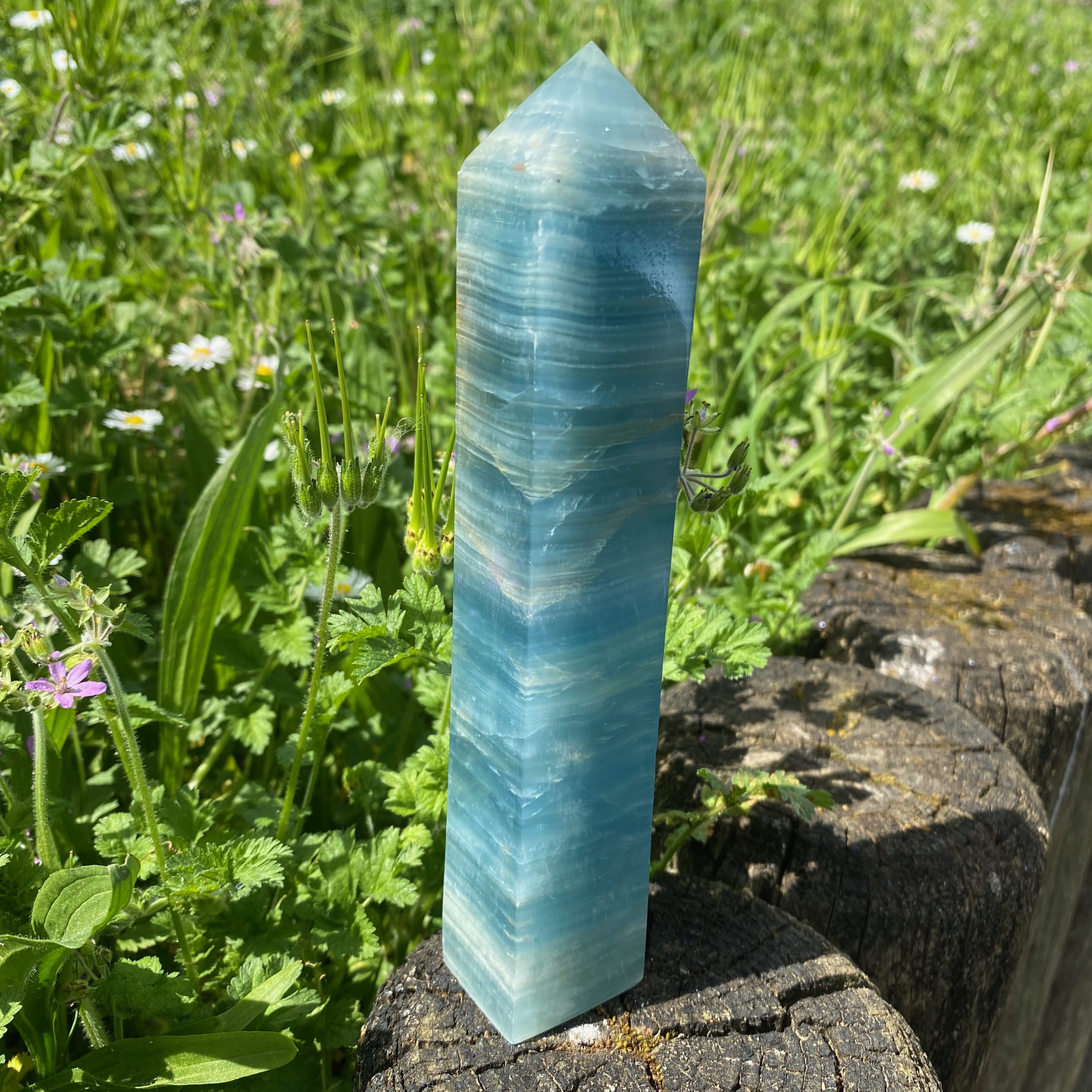 Obélisque en Onyx Bleu Naturel – Sérénité, Force et Communication