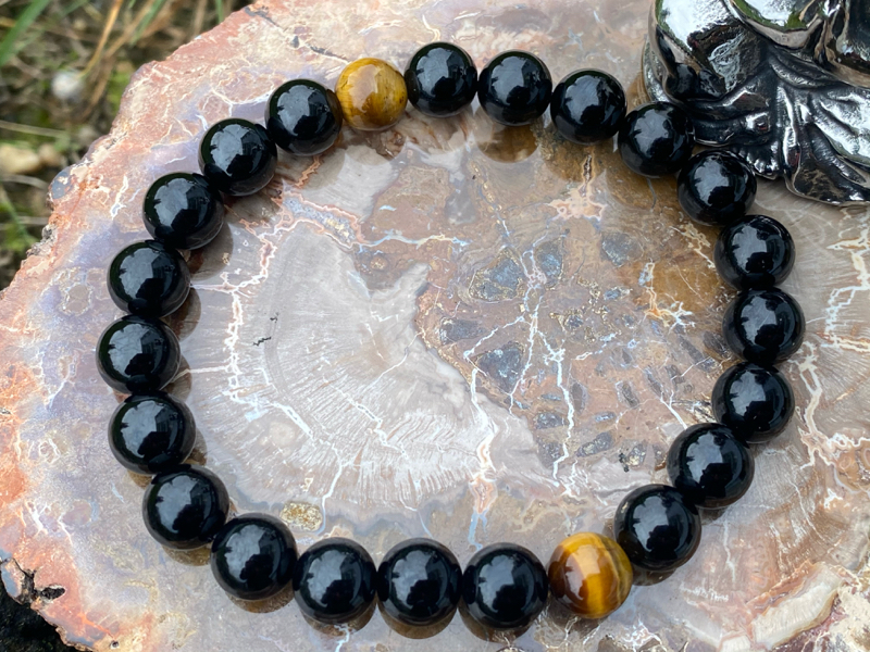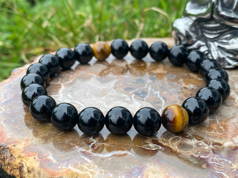 Bracelet tourmaline noire et oeil de tigre en pierre naturelle